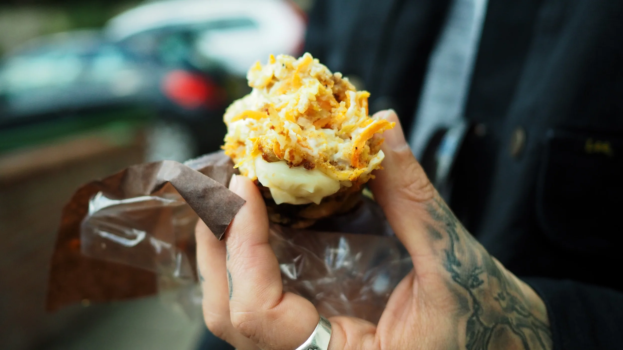 Meat free Martha - we purchased a bunch of savoury cakes from the lovely Karen i can't even tell you how good they were, Carlos is eating one above!